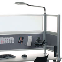 | 33" high Posts accomodate two high panel configurations. Use TSS Arms and Accessories to create a clutter-free working environment. | Mix and match panels for your specific needs. Add third level shelving to lift heavier items off your desk and create “More Space” at the work area. | 24" wide panels may be positioned the sides of a desk for complete workstation privacy. |