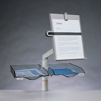 | The specially designed back panel swivel mechanism lets you position ScriptLifter at exactly the angle you require. | Fully jointed system allows you to position the ScriptLifter up and down, or side-to-side. | Rubber stoppers keep the arm in its place, yet roll smoothly to any position on the page. |