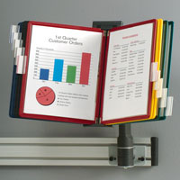 | 10-pocket Reference Organizer Arm keeps important information easy to find. The Arm can be pulled closer to you or pushed out of the way to clear space. | Proper lighting reduces eye strain and fatigue. This Lamp positions light exactly where you need it most. The diffuser bulb casts an even, glare free beam. | Brackets allow you to mount rails to a wall or panel system. Brackets adjust to any position so you can mount them directly into wall studs or different panels widths. |