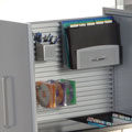 file space, binder and book storage, accessorized Slatwall to reduce clutter
