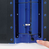Binders are easy to remove, even from a loaded shelf. Double grips can be grabbed from upper or lower shelves. | Closed, browse and fully open positions allow fast, easy and complete access to every page in the binder. And the 3-position finger touch binding mechanism is easier to operate than ordinary binders. |