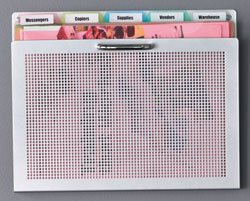 Axcess SteelWorx™ Wall Organizers Organize with style! SteelWorx™ Wall Organizers have an attractive perforated steel finish to give a modern look to any office. Available in three models. The Wall Pocket and Wall Strip Pocket organize active files and keeps them within easy reach of your desk. The Wall Pocket Board can be used as a message center that organizes files and keeps notes handy on the magnetic bulletin board. Made from heavy-gauge steel with a durable silver powder-coated finish. Wall mounting hardware is included, accessories are optional and sold separately.